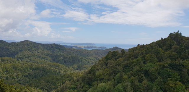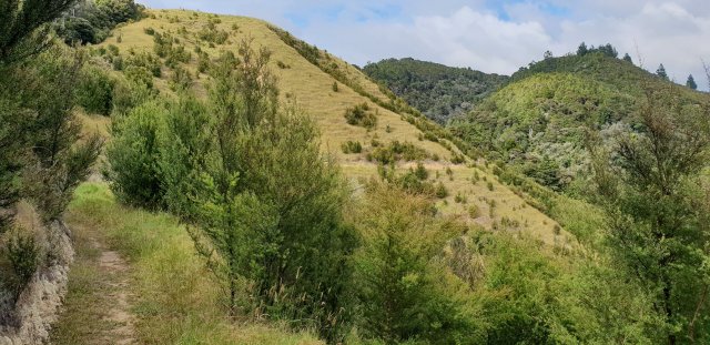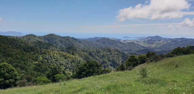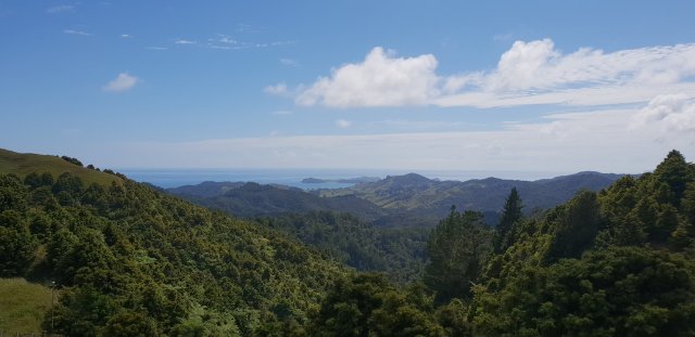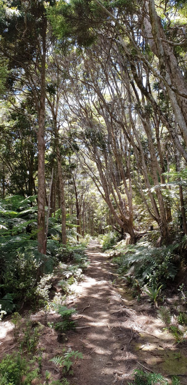 It was a big day. The two forests between Helena Bay and Whananaki took me a good seven hours. From the ‘High Chapparal’ entrance at Helena Bay, an old farm track sidled steep pasture and through manuka trees before entering the forest. The tracks were well formed and well marked but there were several steep elevations that were hard work. I was sweating a lot with the humidity as well. The east coast views were worth it.