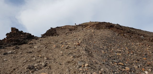 I left the hut at 7am and made my way back up to rejoin the trail. That got the legs working and the blood pumping early on in the day. I was back up to the lakes by 8.30 and few few people were already there. The first of the ant trail. I had one final steep climb up to the Red Crater and then it was all downhill to the Mangatepopo hut where I stopped for some lunch. The track to the Tongariro summit was closed and so was the track to the Ngauruhoe summit. Hedley had mentioned last night that it is no longer allowed but admitted there is nothing they can do to stop people. The crossing basically takes you to the top of Tongariro but just not the official summit which is about 1km west. I could not see how it was possible to get to the top of Ngauruhoe anyway and it was covered in cloud by 11am. The wind picked up today. It was a strong westerly but helped keep me cool. Many people were underdressed and did not look prepared. No wonder so many people get rescued.