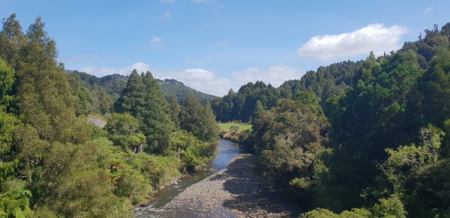Ben from Whanganui River Canoes dropped off my mountain bike at 8.30am to the YHA and took my backpack. He was on his way to Whakahoro so delivered it to the Blue Duck cafe for me to pick up on arrival. Just out of town was the start of Fishers track. It was an awesome ride and all downhill for approximately 13kms. I can’t remember the last time I rode a bike. I got a bit too confident coasting down the track and could not stop in time for a large rut ahead of me. The front wheel hit hard and I smashed my shin on one of the pedals. Then I went too fast into a muddy patch and the bike slipped out from under me. I landed on my side and hurt my knee a bit on a rock. I came across two wild goats and two deer. They sprinted away from me down the track and then eventually into the bush. When I came off the track it was another 40kms of road to Whakahoro. Mostly metal road. I had a very sore arse by then end of it. I passed Josh then Nick and Dani and Jesse was already at the Blue Duck cafe when I arrived. I got a coffee and noticed a massive chocolate brownie that had just come out of the oven and was cooling on the table. I told the lady how good it looked and she cut me a piece and gave it to me with my coffee. She mentioned that they were making a big goat curry for a few tourist buses coming into town later and told me to come back at 6.30 for all I can eat. We all hung at the cafe until after dinner. A lady called Sue joined us at our table. She is an ED doctor from Auckland and is cycling the country south bound.