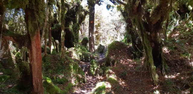 I had a separate mission today to deliver a GPS/communication device to a group who went up yesterday and are using different tracks and huts to us but our track will combine for a short period at the top. The guy we picked up along the way yesterday had forgot to take it. He has a group of young teenagers with him. They need it to check in and communicate with John. I intercepted them just in time at a junction point. They were sitting and having a break luckily otherwise we would have missed them. He was very grateful and surprised I had got it to him.