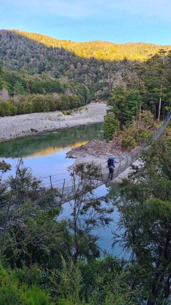 Dad and I had a wash in the river. It feels so great at the end of the day. We were attacked by relentless swarms of sandflies again and were only safe from them once we were in the hut.