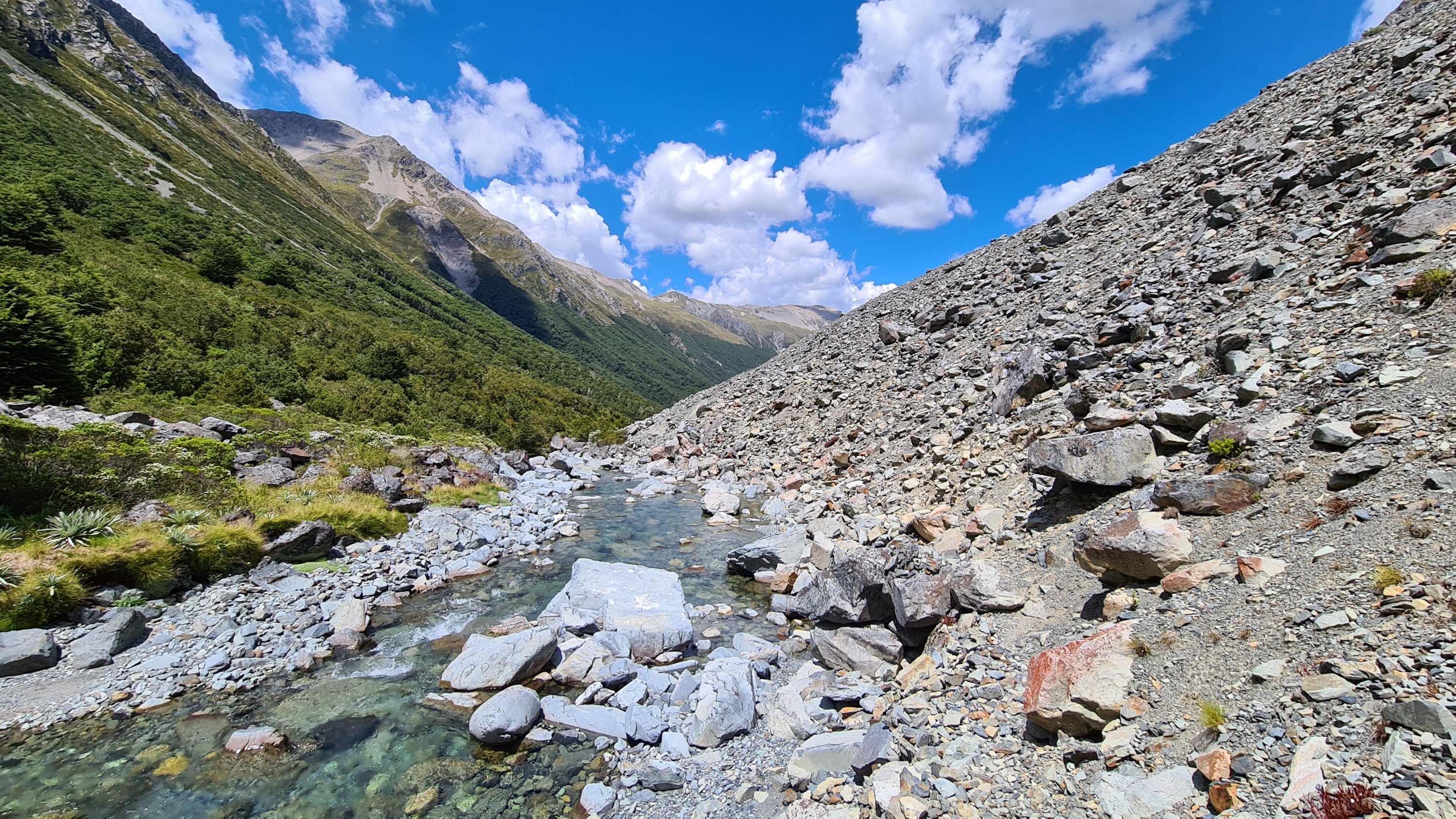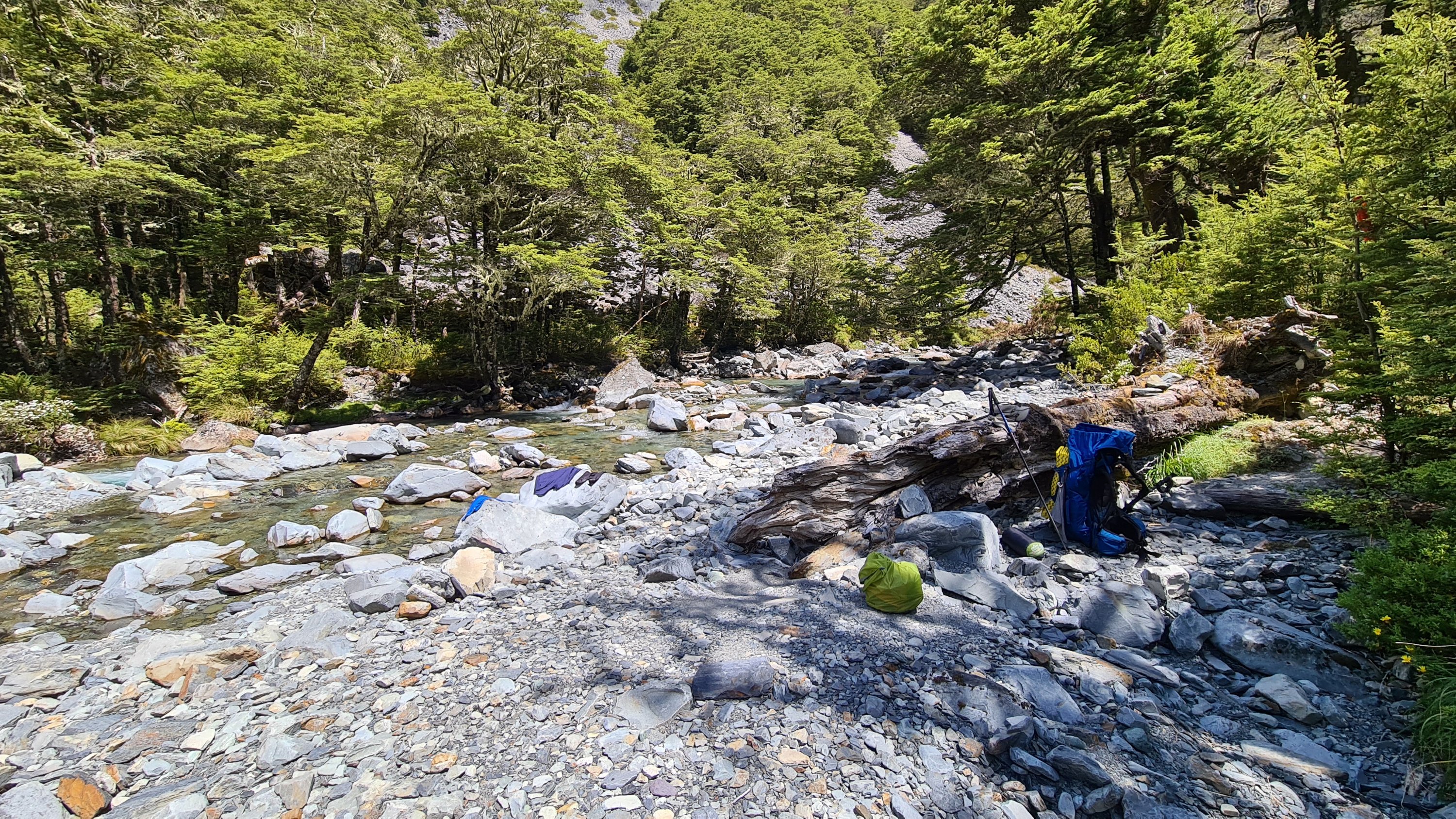 I stopped for lunch next to the Waiau river and had a swim. The water was ice-cold but so good! I needed a good wash too. I took my time knowing I only had four hours to Waiau Hut. I rinsed out some clothes too and they dried quick, laid out over rocks in the sun.