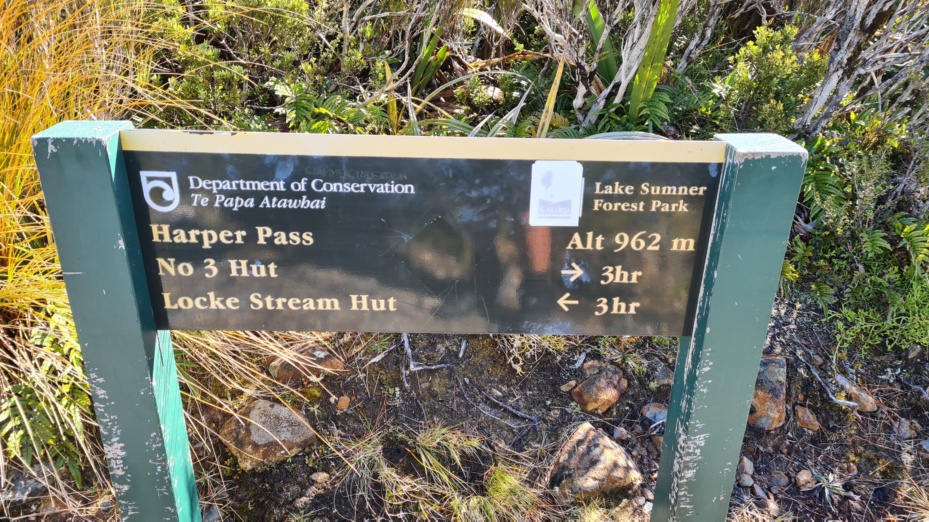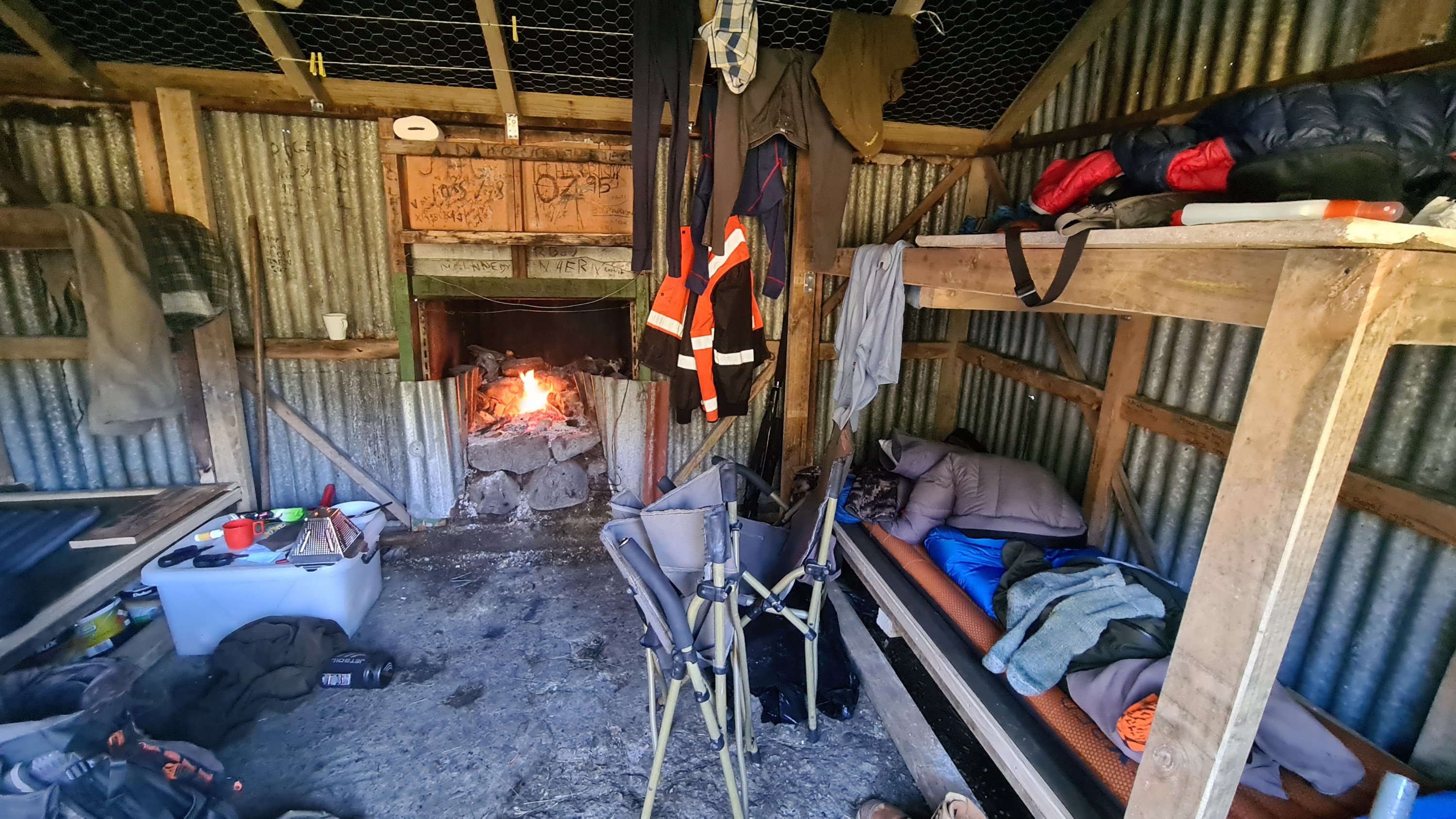 The first half of the day to Locke Stream hut was mostly through bush and very muddy. We passed a small four bed hut called Cameron Hut and there were two guys there who had just finished replacing the roof. They were volunteers and had all their building supplies and food etc dropped in by helicopter. The fire was going and it looked pretty cosy. We passed a small two bed bivvy on the way up Harper’s Pass.