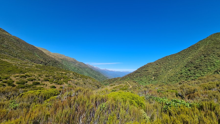 We were gradually climbing as we followed the Hurunui river upstream and then Harper’s Pass was a short and steep climb from the bivvy. We are now on the western side of the southern alps. A new mountain range came into view again and it was a long and steep descent down to the valley floor and the headwaters of the Taramakau River which grows into a large river that flows all the way into the ocean south Greymouth.
