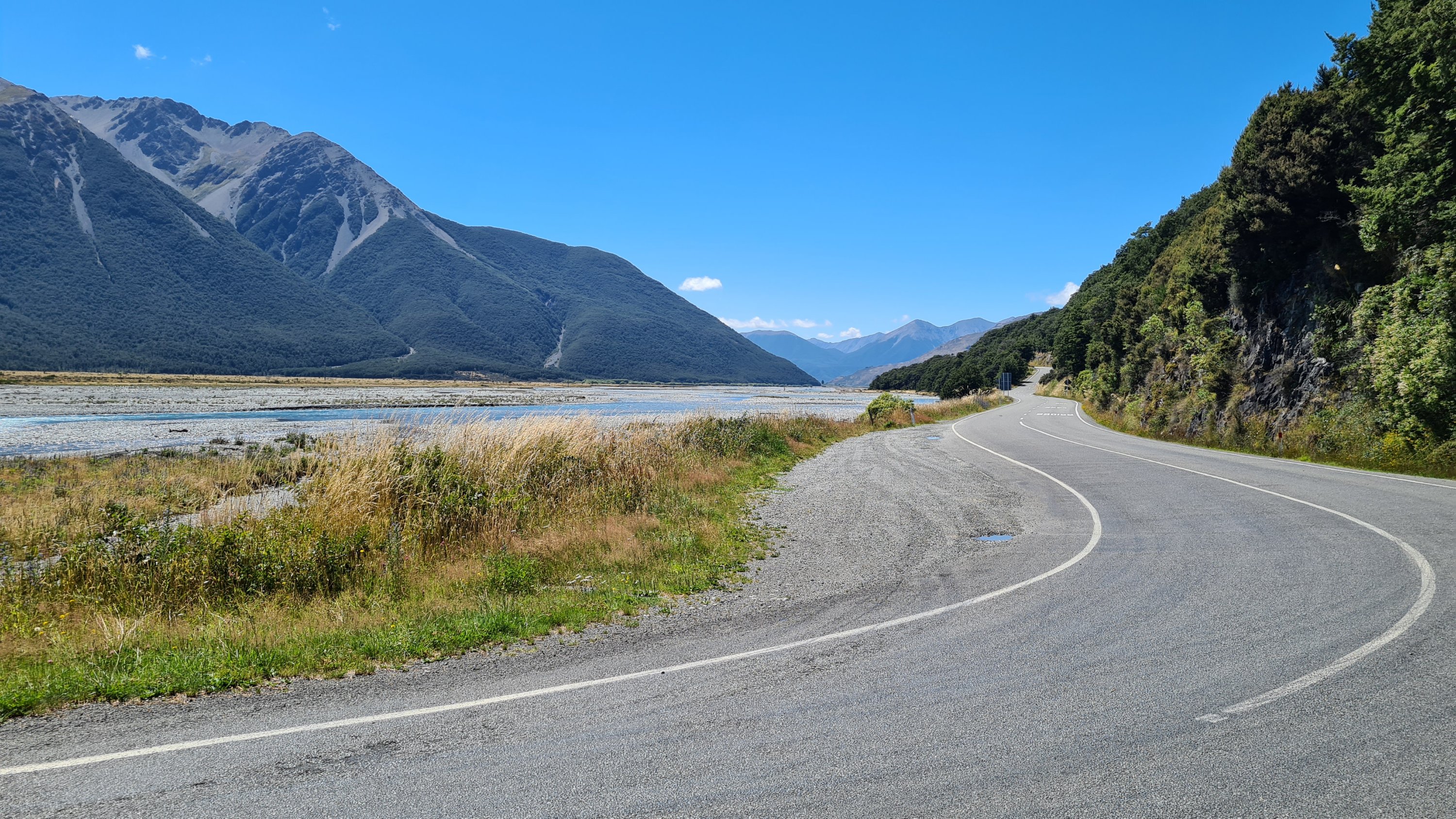 It turns out we made the right choice to walk the road. There was heavy rain overnight and this morning and the winds were very strong. A brother and sister who were also staying at the backpackers were going to have a go at it today. The owner Bill was going to drop them off at the entry point but then cancelled the trip because it would not be possible. Bill was a great host and runs a very casual operation there. There’s no check in or out time and you either pay cash into honesty box or online banking. He also maintains the flood track that we struggled through yesterday on his own accord. He has been doing this for the past five years or so because DOC don’t. All the fallen trees that we had to get around had only come down in the last few weeks after he cleared it already and when we told him about it he said he will go back in there with his chainsaw and spend a week clearing it out again. What a legend! The bathroom there is worth a mention too. It has a clear roof so you can see the mountain’s around you while your in the shower.