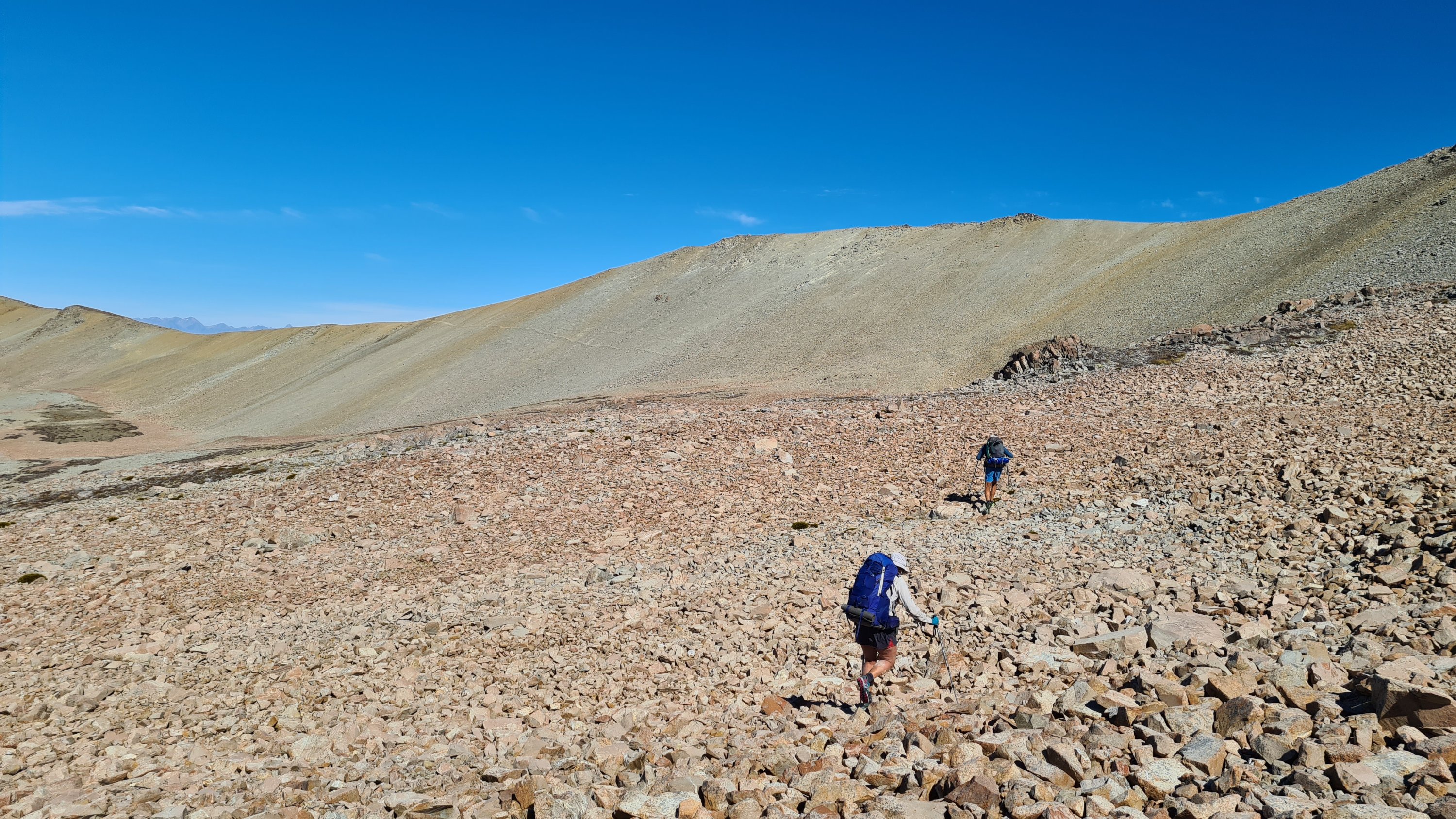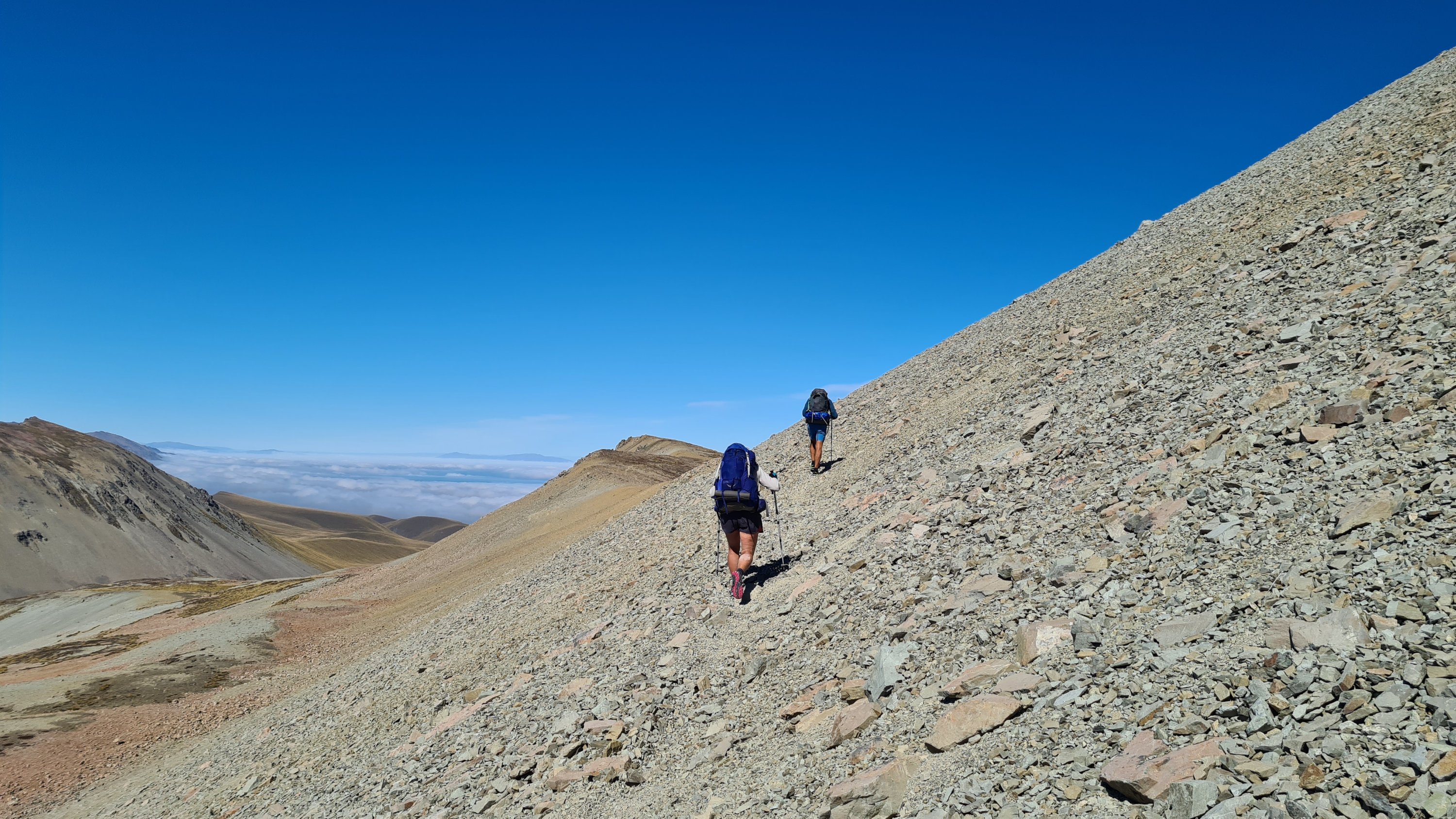 We got an early start and were heading out of the hut just before 7am. It was very cold and I had to put socks on my hands because my fingers were frozen. My feet were also frozen from walking up a stream as soon as we left the hut. I am trying my trail running shoes for this section and they are not waterproof. They dry faster once they are wet but don’t insulate your feet at all. They are also feeling a bit too tight so I will switch back to boots in a few days.