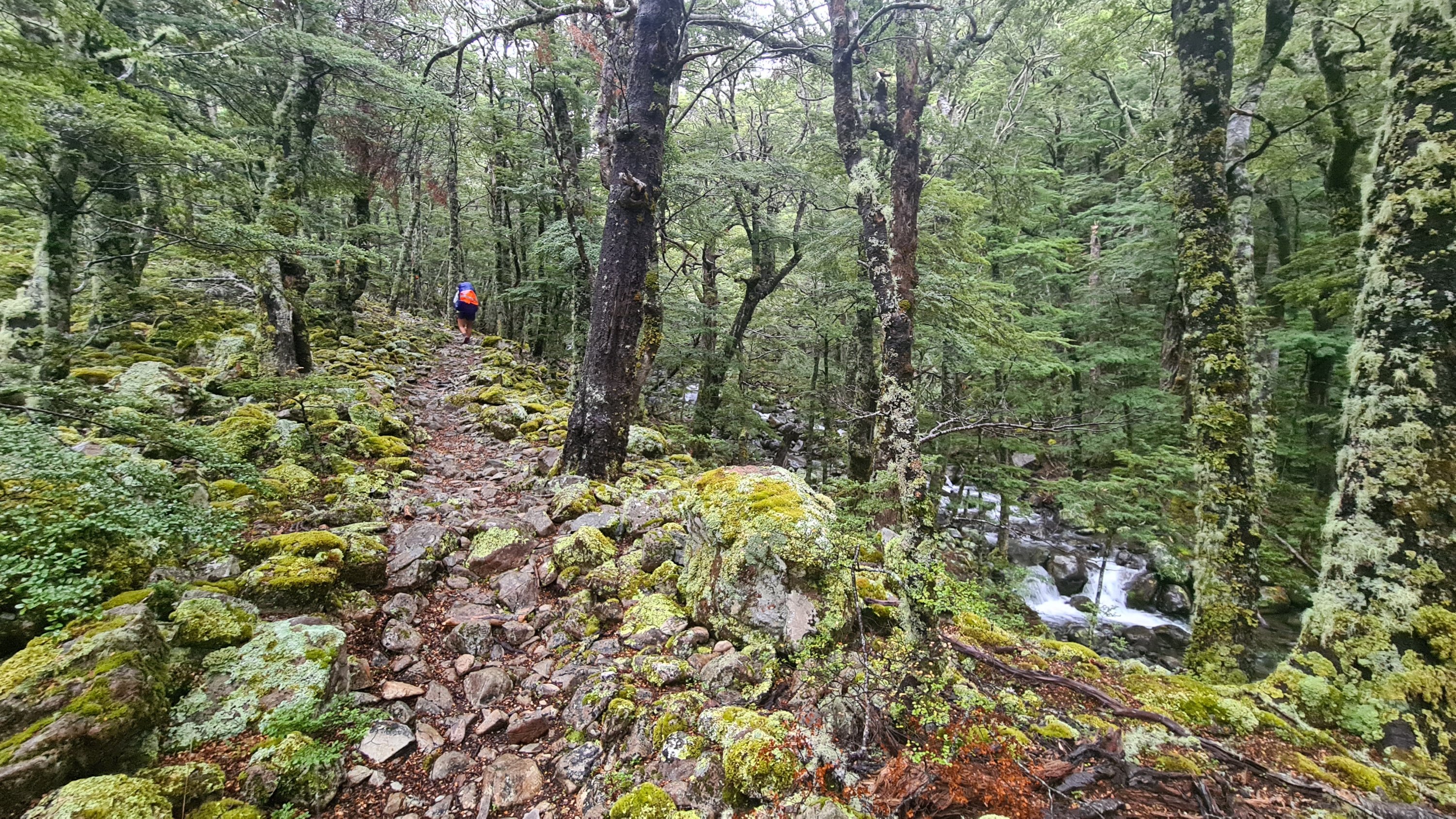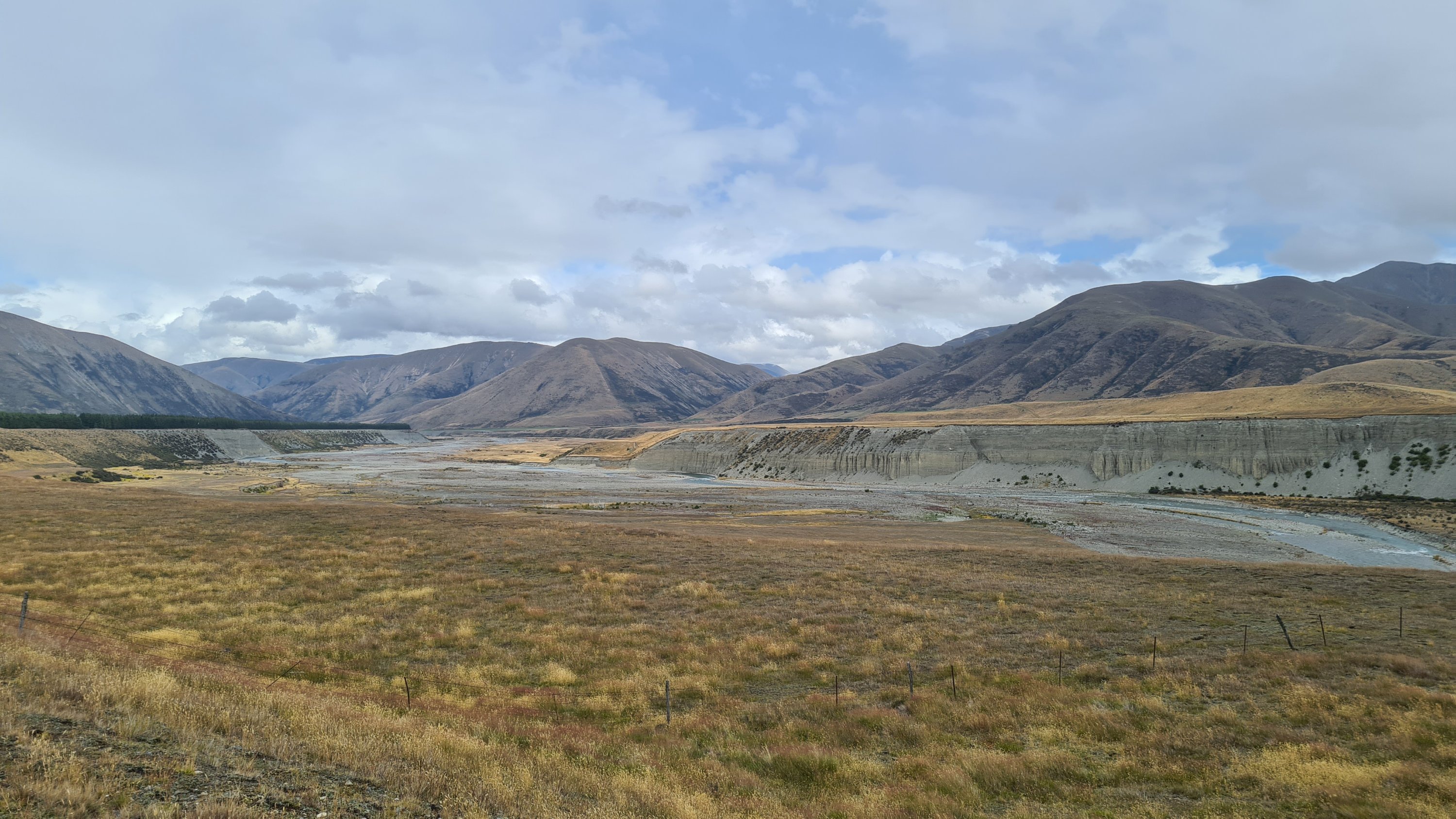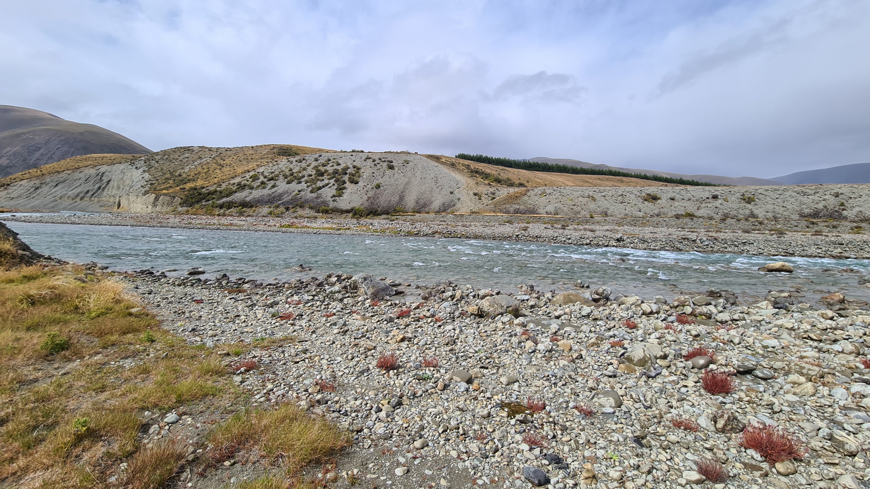 The track emerged into the wider Ahuriri valley and then the river which we needed to cross. It is the largest unbridged river on the TA. We were not sure if it was going to be possible to cross as there had been lots of rain over night. Luckily, it wasn’t running too high and we linked up and crossed it easily. The deepest it got was up to my waist.