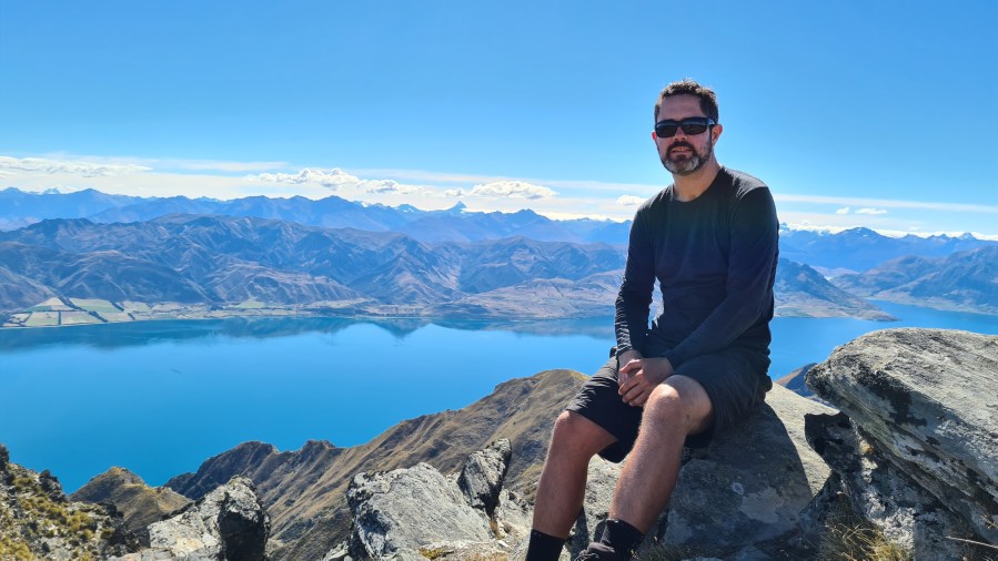 At 12pm we reached a track junction and headed up and away from the river. It was straight up for about an hour and was really tough and involved scrambling up some rock faces. Still in beech forest for the most part but then it openned up as we came out of the tree line and reached Stody’s hut. Another hut you couldn’t pay me to stay at. We had lunch there and then continued for another hour following a farm track all the way up to the ridge line. A total of 800m elevation up from the river. The track then continued along the top of the undulating ridgeline and into Hawea Station for another 8kms until one final push up to the top of Breast Hill which overlooks Lake Hawea. The view was stunning as you come up over the brow of the hill and it is a big drop off with the lake way down below. You can see the mountain ranges behind it, including Mt Aspiring and even lake Wanaka poking out around the corner. I have attached the video of the moment I got there.