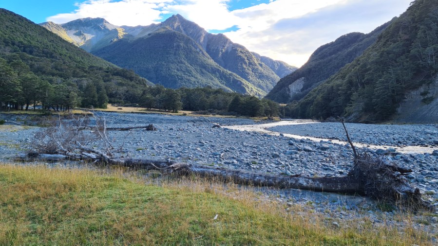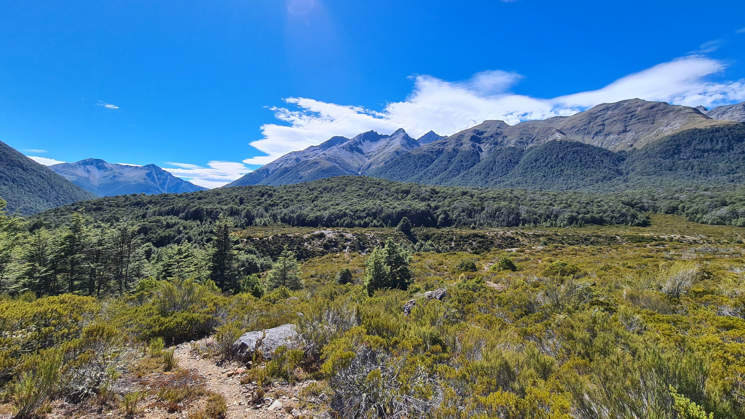 Beyond Greenstone hut the trail becomes less travelled. Heading away from the river but still mostly through forest. At times it would open up and the views were great. There were some boggy parts and mud which I need to get used to again coming into the Southland region.